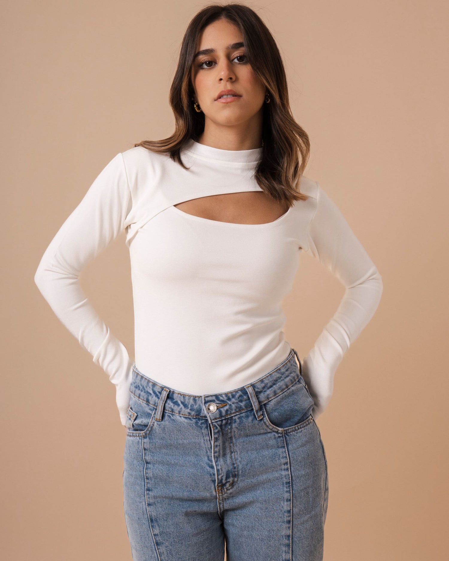 One Shoulder Choker Neck Long Sleeve Top (A33)