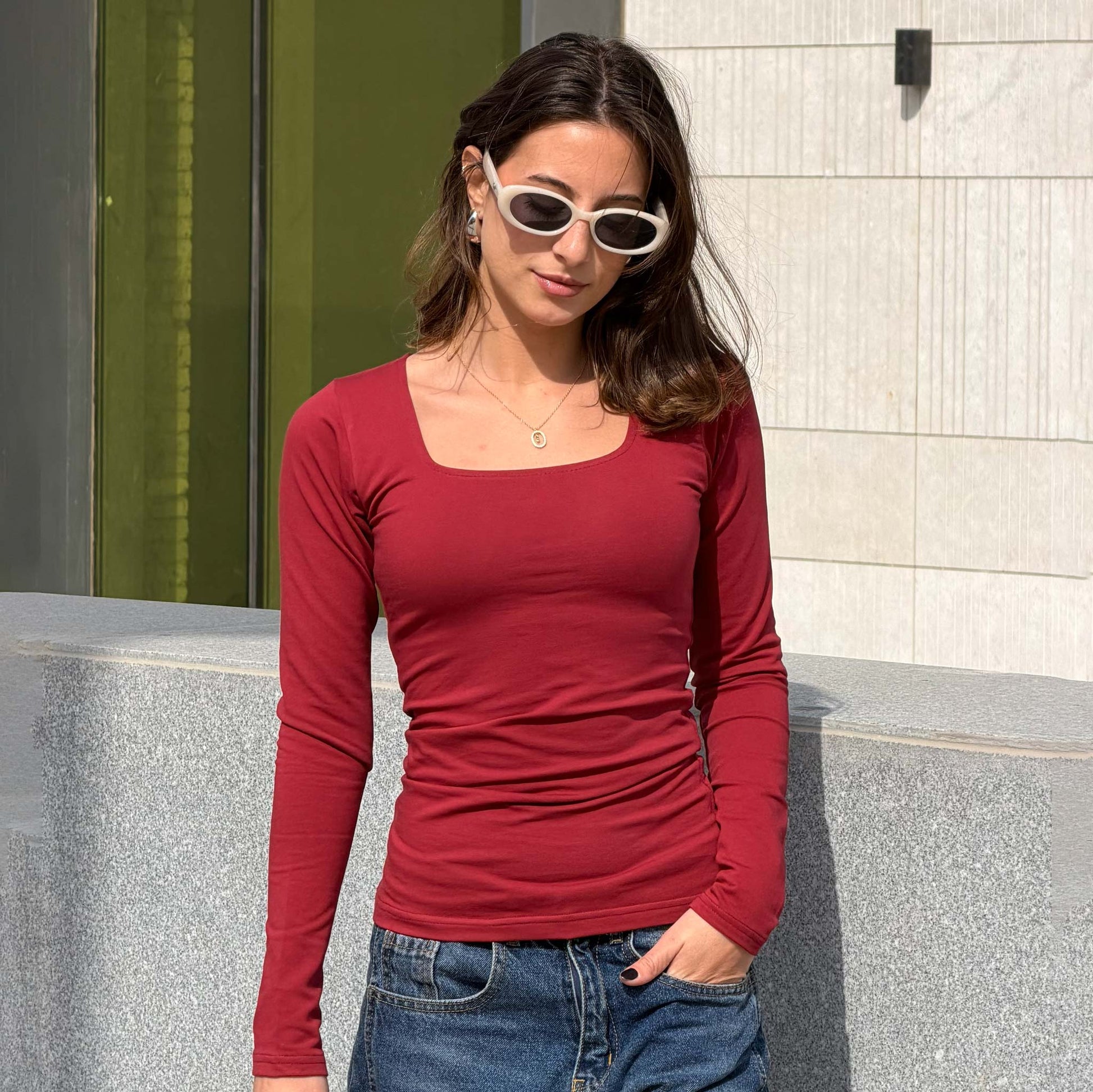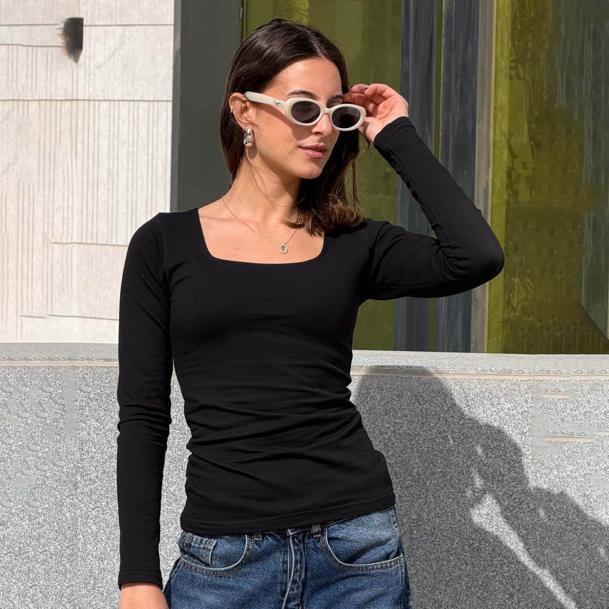 بلوزة بأكمام طويلة ورقبة مربعة (A85)